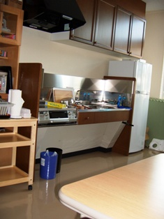 その廊下を進み大きな扉を開けると、そこからは自立訓練施設です。この施設に入って左手には入所訓練されている皆さんが集える憩いのスペースも確保された食堂がありました。(写真5)