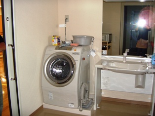 キッチンや洗濯機、お風呂場、トイレなど1人暮らしの部屋を再現し、ここで3ヶ月自立生活を目指した訓練を行うそうです。上階は入所者の個室となっており、プライベートエリアとのことで撮影はやはり無理とのことで断念しました。